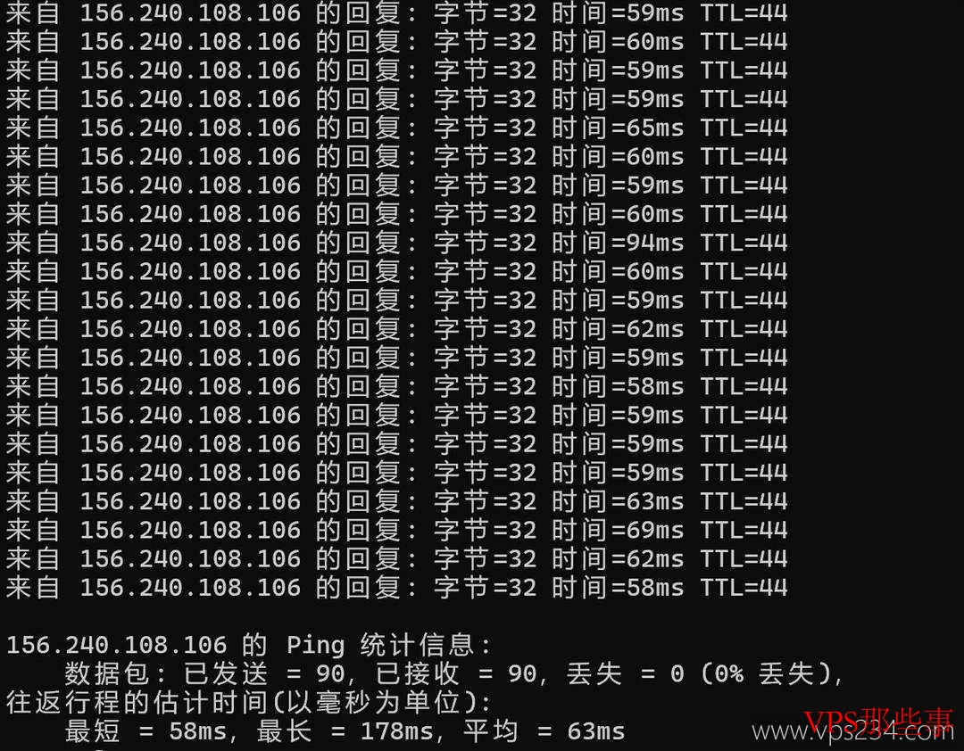 测试地点本地Ping平均延迟约63ms,网络稳定,几乎无丢包现象。