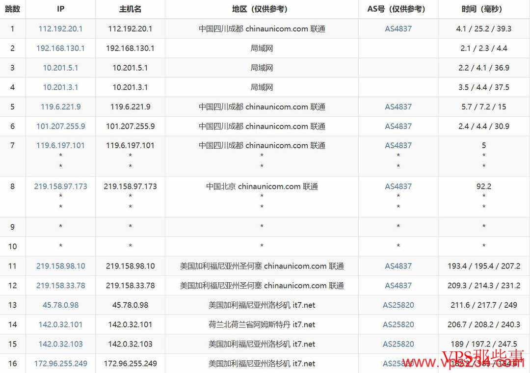 从路由图来看,三大运营商的去程线路都直接从国内出口直连洛杉矶机房。具体来说,电信走的是163骨干网,联通走AS4837线路,移动则通过CMI骨干网,整体路由设计合理,保证了访问的稳定与速度。