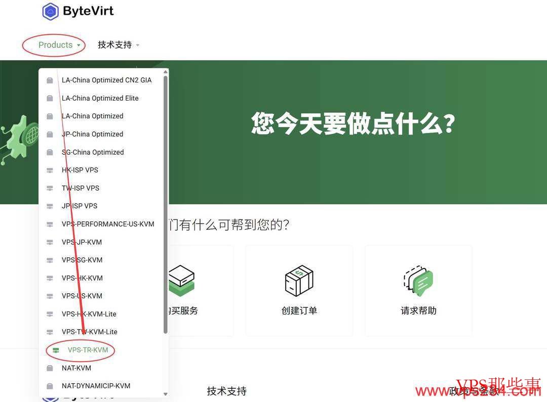 想要入手这款土耳其VPS?流程其实很简单。先通过ByteVirt的优惠链接进入官网,找到导航栏的【Products】,选择【VPS-TR-KVM】节点。